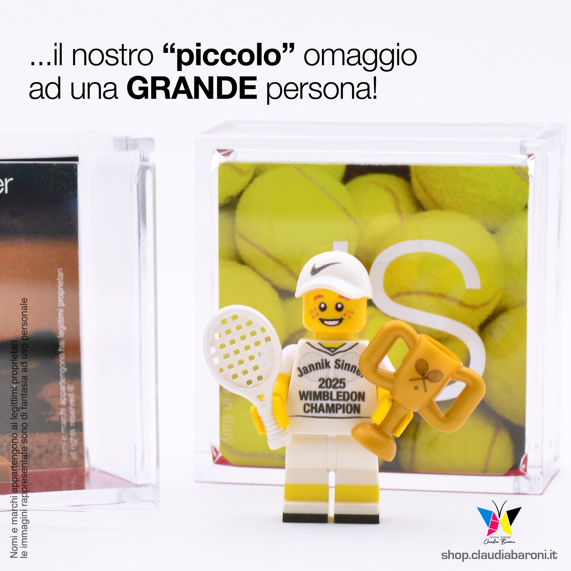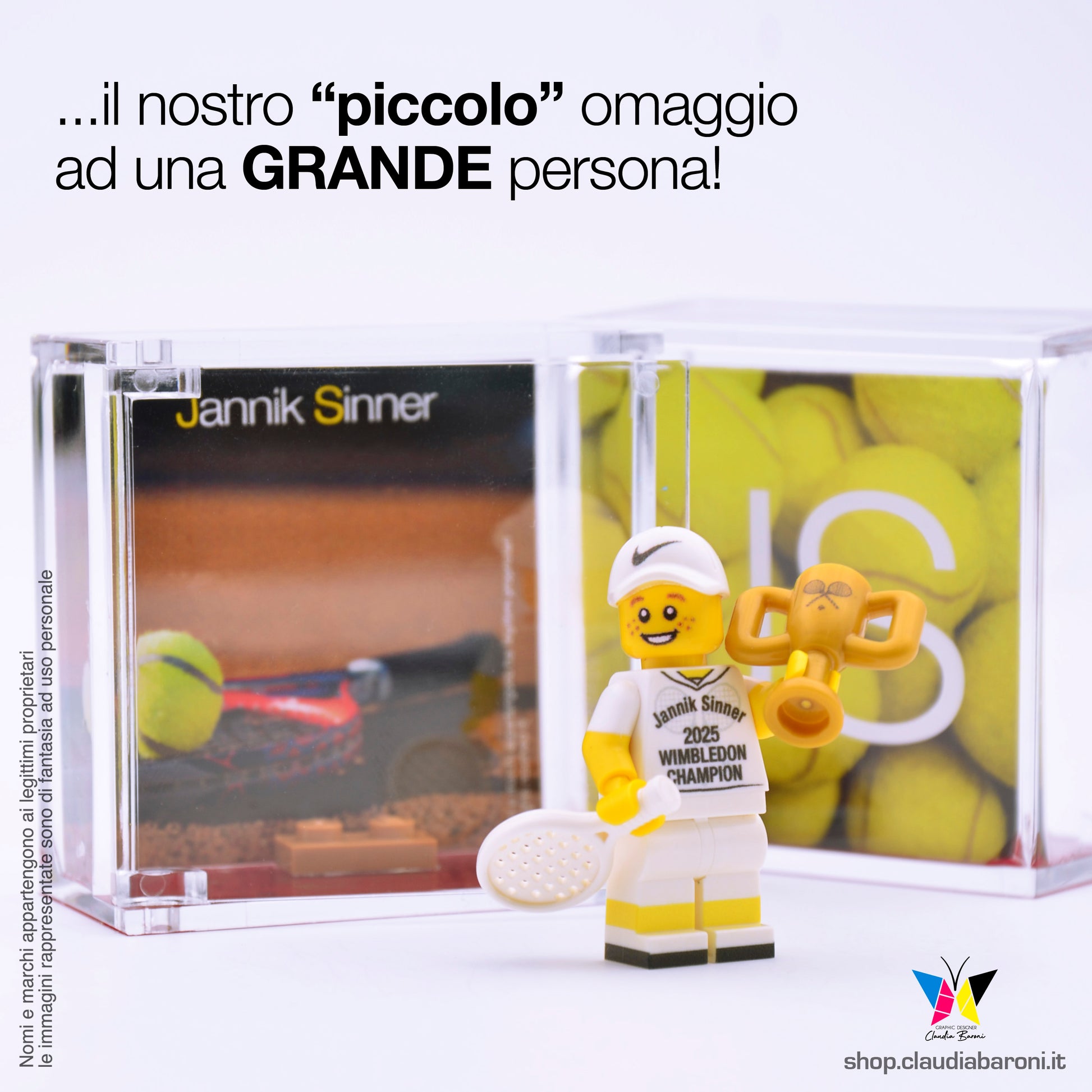 Cofanetto in plex contenente una minifigura (realizzata con pezzi originali Lego®)